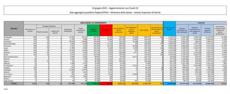 Il bollettino del ministero della Salute di oggi, 14 giugno, con i dati riguardanti l’epidemia di Covid-19 in Italia. Gli aggiornamenti dalle Regioni.