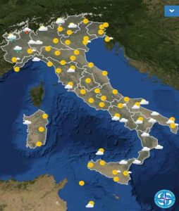 Cielo sereno o poco nuvoloso salvo qualche innocuo addensamento diurno a ridosso dei rilievi appenninici di Marche ed Abruzzo.