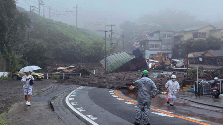 La città di Atami, in Giappone, è stata colpita da una violenta frana che ha distrutto almeno 10 case. Gli edifici sono stati travolti da fiumi di fango. Il disastro è stato provocato dalle piogge particolarmente intense di questo periodo. I dispersi, al momento, sono almeno 19. I residenti della zona sono stati fatti evacuare. L’anno scorso decine di persone sono morte a causa delle inondazioni di luglio.