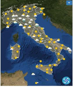Sulle regioni peninsulari nuvolosità irregolare a tratti intensa con piogge e temporali nella notte su nord toscana ma in rapida estensione a gran parte della regione, specie aree interne e appenniniche, così come a Umbria e marche, con fenomeni anche intensi sulle marche dal pomeriggio. Fenomeni decisamente più occasionali sul Lazio al mattino e nel pomeriggio su appennino laziale e abruzzese; sulla Sardegna molte nubi al mattino con qualche rovescio sul settore ovest ma in miglioramento pomeridiano con ampie schiarite.