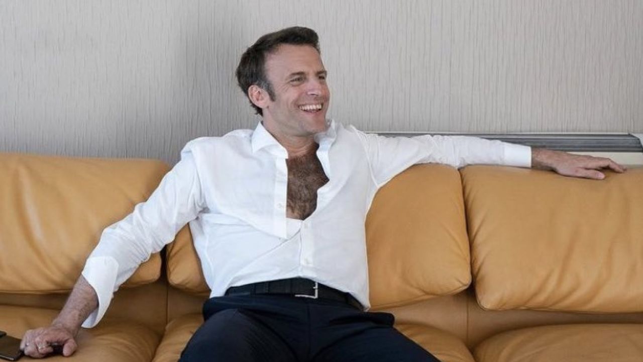 Quasi sbracato sul divano, niente giacca o cravatta ma addirittura la camicia aperta a mostrare la folta peluria sul petto. Emmanuel Macron si è fatto ritrarre così sabato scorso, a una settimana dal ballottaggio che deciderà il prossimo presidente francese.