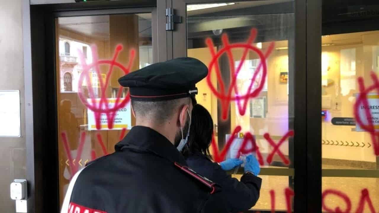 Scritte no vax imbrattano sede Agenzia Entrate e minacciano Zaia, due gli arresti a Padova. Il governatore ha commentato la vicenda: “Sfregio becero e inutile, clima d’odio sta avvelenando il Paese”.