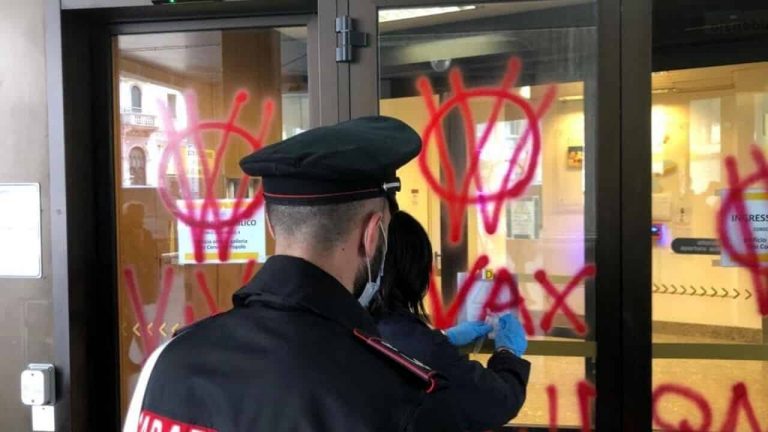 Nella giornata di oggi, due uomini sono stati fermati dai carabinieri della sezione Radiomobile della compagnia di Padova, e denunciati per aver imbrattato con minacce no vax i muri dell’Agenzia delle Entrate e di Azienda Zero. Sarebbero loro, infatti, i responsabili dell’atto vandalico operato nella notte martedì 19 e mercoledì 20 aprile. Oltre a diverse scritte minacciose che inneggiavano alla pericolosità dei vaccini, i due hanno firmato alcuni insulti contro il Presidente della Regione, Luca Zaia.