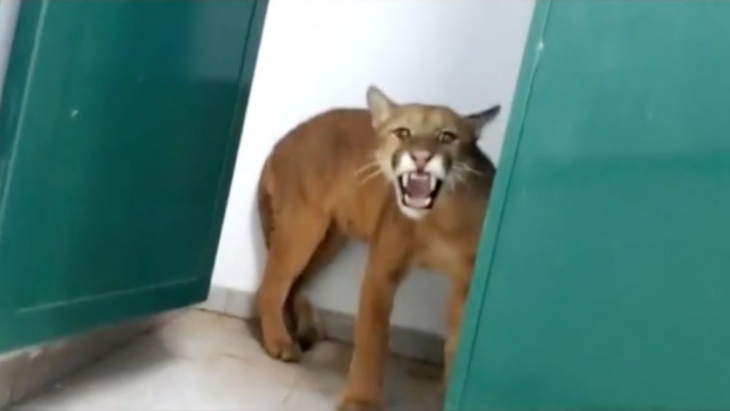 #Susto estudiante encontró a un puma dentro del baño de una escuela primaria en Nova Lima, Brasil.