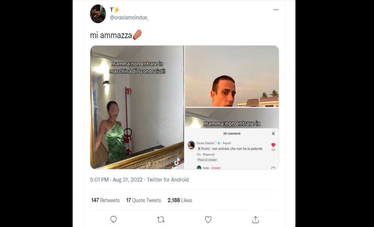 Da quando la sua esperienza ad Amici è terminata e ha iniziato a muovere i primi passi nella sua promettente carriera artistica, Sangiovanni ha subito avuto al suo seguito moltissimi fan. Ed è stata proprio un’ammiratrice del cantante che, di recente, ha pubblicato un video sui social nel quale ha ammesso in modo ironico che “andrebbe in auto con Sangiovanni”. La replica di Giulia Stabile, con altrettanta ironia, non si è di certo lasciata attendere: “Non entrare che non ha la patente“. Non è di certo un mistero, infatti, che la ballerina abbia conquistato il cuore di tutti i telespettatori, non solo per il suo innato talento per la danza, ma anche per la spontaneità con la quale affronta la vita.