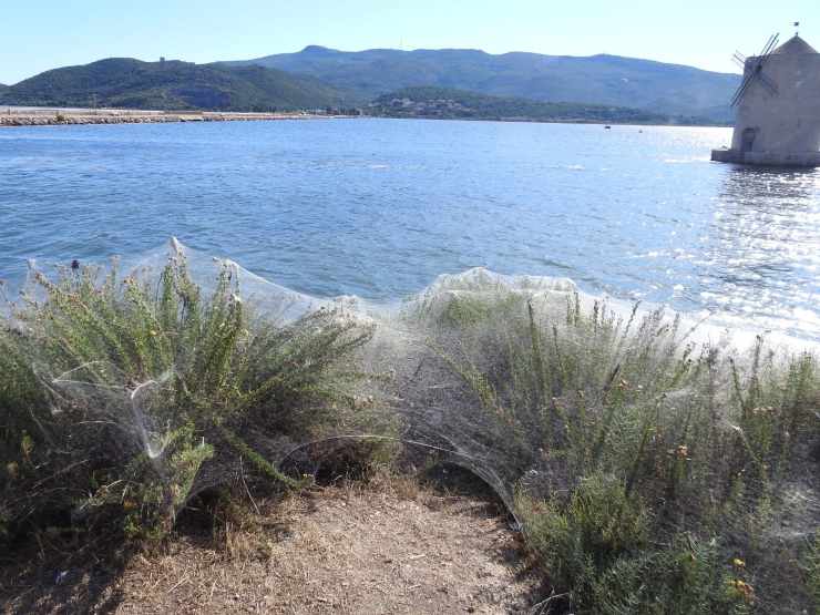 Ma non bastavano i moscerini a Orbetello. Adesso sono arrivati anche i ragni. E sono una marea, come accade talvolta in Australia. Tanto che si fatica a riconoscere la vegetazione della laguna. Gli alberi sono ricoperti da quella che appare una rete bianca fatta da fitti veli. Ma in realtà si tratta di enormi e impressionanti ragnatele, lunghe anche decine di metri.