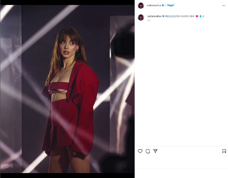 In un post pubblicato sul suo account Instagram ufficiale, la cantante Annalisa si è mostrata in tutta la sua bellezza indossato una minigonna rossa e una giacca dello stesso colore, con soltanto una fascia a coprire la parte davanti. La cantante, che ha appena 37 anni, è in forma mozzafiato. Lo scatto ha ricevuto tantissimi like.
