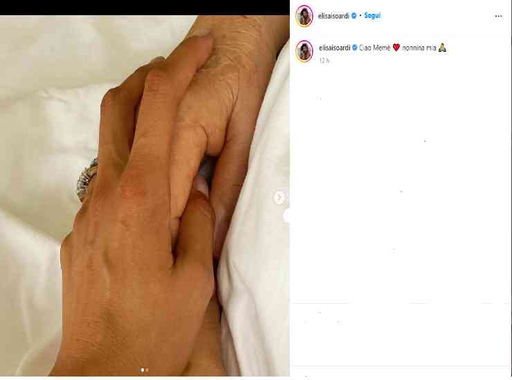 A tal proposito, Elisa aveva dichiarato: “Memè, la chiamo così fin da quando sono piccola, mia nonna Lucrezia. Ogni volta che la vedo mi rendo conto di quanto mi dispiace non poterle dedicare più tempo, è una fortuna poter parlare ancora con lei e vedere nei suoi occhi la stessa luce e la stessa forza che rivedo in me stessa. I nonni ci lasciano un’impronta nell’anima per tutta la vita. Grazie a tutte le persone che assistono con cura i nostri anziani”. aveva scritto la conduttrice solo poco tempo fa.